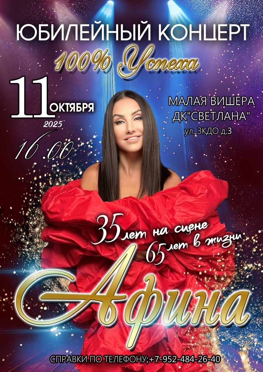 Юбилейный Концерт Афины Отдых Районный дом культуры «Светлана» приглашает на концерт Афины.Справки по телефону +7 952 484 26 40 концерт — 30.09.2025 19:47 Комментарии Написать комментарий Нет комментариев. Ваш будет первым! Ваше имя E-mail для ответов Отправить Отменить Предпросмотр